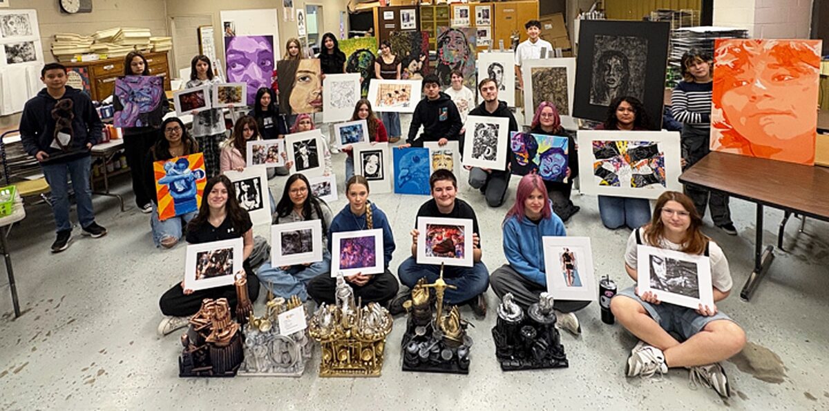 All Hugoton USD 210 Scholastic Art Competition winning works and their creators, pictured back row left to right are Jaylen Mendoza, Li-Mari Burger, Rylea Martinez, Brissa Evans, Bridget Knopp, Jacqueline Angeles Cuenca, Aleah Farnum, Paitan Schobert, and Ethan Acosta. In the middle row are Paty Zizumbo, Yazmin Ramos, Breckyn Salazar, Aubree Pate, Moises Rodriguez, Tristan […]